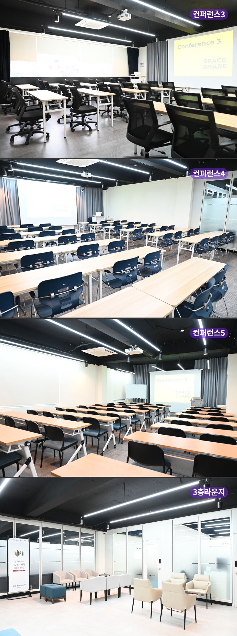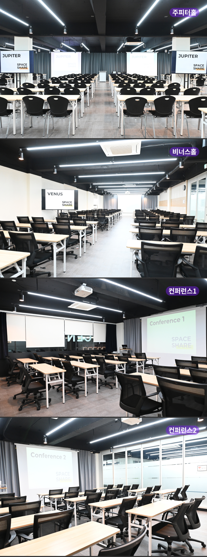 | 대형홀(2~300명) 4개, 동시 2,000명 이용 가능 35개 컨퍼런스홀/교육장/회의실/면접장 |